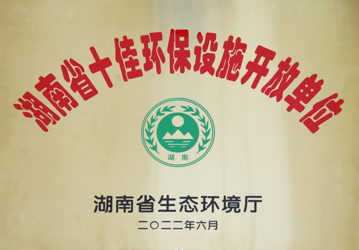 • 2022年6月被湖南省生態(tài)環(huán)境廳授予“湖南省十佳環(huán)保設(shè)施開(kāi)放單位”
